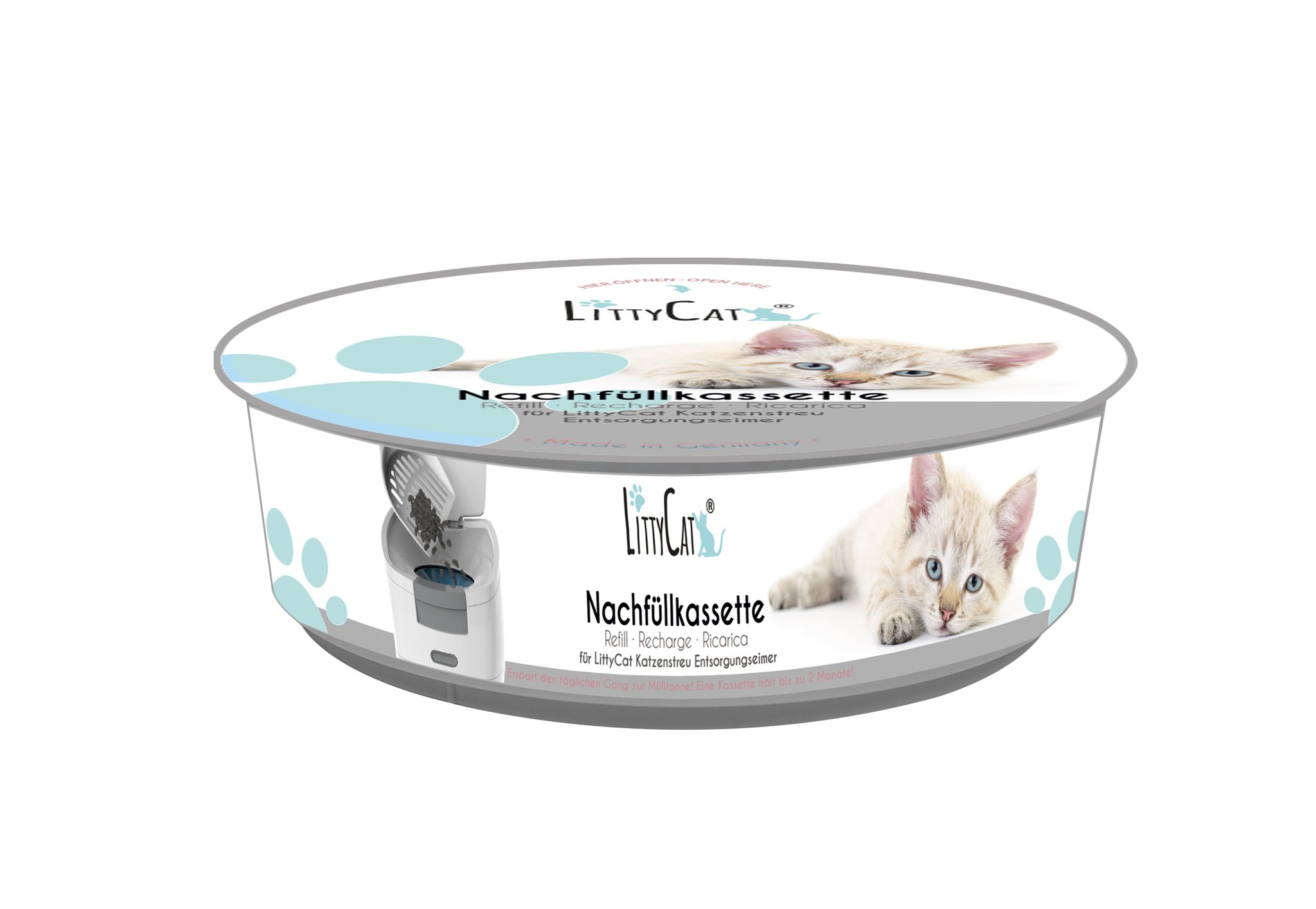 Eine Nachfüllkassette reicht bis zu 2 Monate. (Bei Haushalten mit einer Katze)